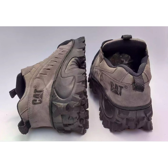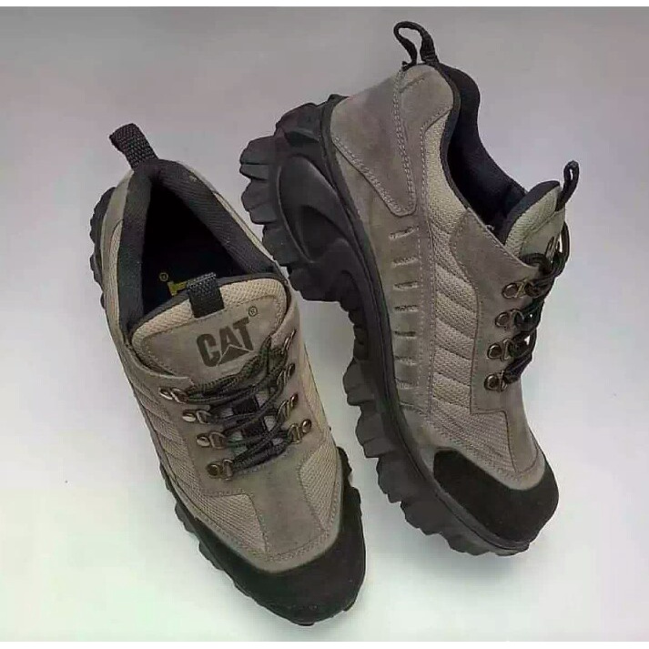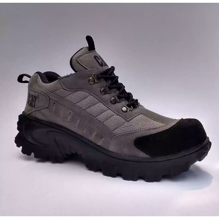 Sepatu Boots Safety Pria Pendek CAT Abu Original Ujung Besi Outdoor Proyek Hiking Sol Karet