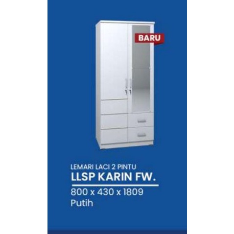TERMURAH Lemari baju pakaian 2 pintu 2 laci full putih kaca panjang - BANDUNG area saja