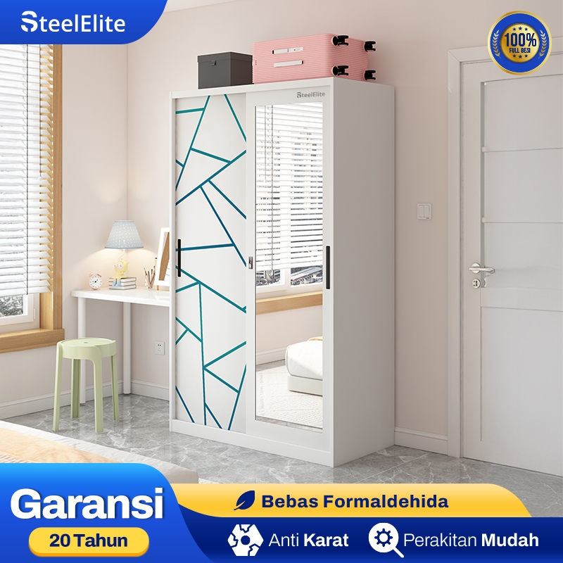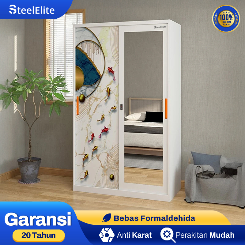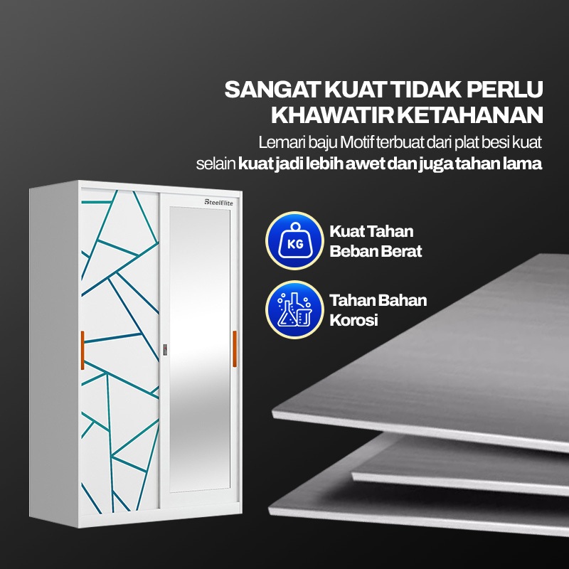 STEEL ELITE LEMARI BESI SLIDING 2 PINTU LEMARI BESI PAKAIAN LEMARI BAJU MINIMALIS FULL MOTIF