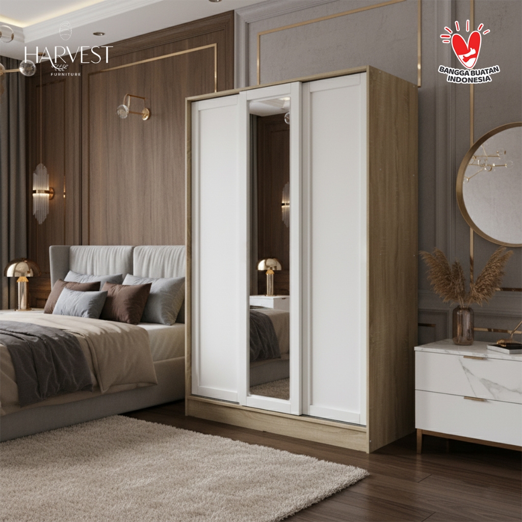 Harvest Furniture Lemari Sliding Pakaian Baju 3 Pintu Minimalis Murah