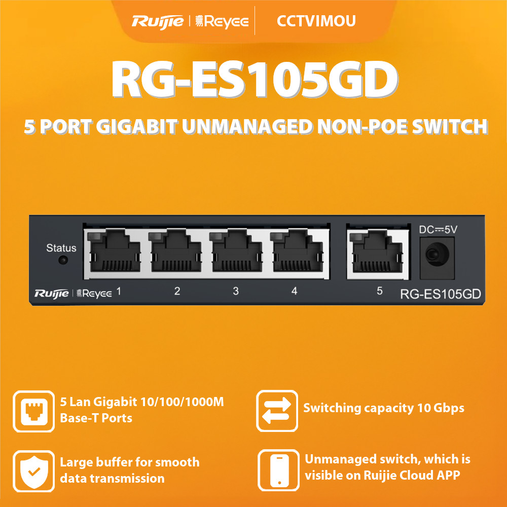 RUIJIE REYEE RG-ES105GD 5 Port Gigabit 10/100/1000Mbps Unmanaged Non-Poe Switch Metal Casing
