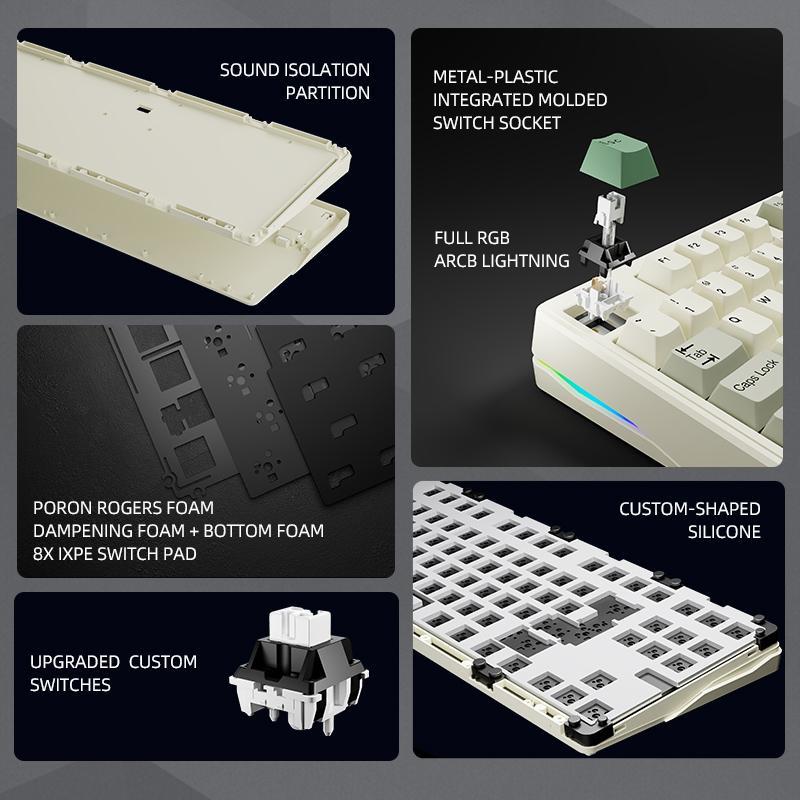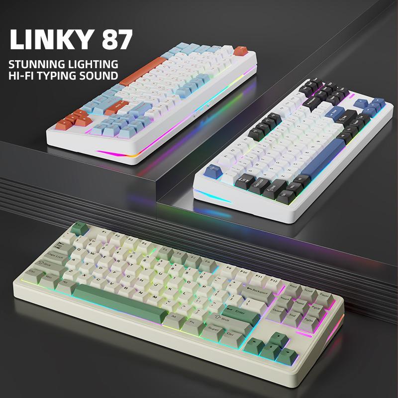 ElecFox LINKY 87 TKL Keyboard Mekanis Kustom 87 Tombol Kabel & Nirkabel Bluetooth LED Gaming Keyboard