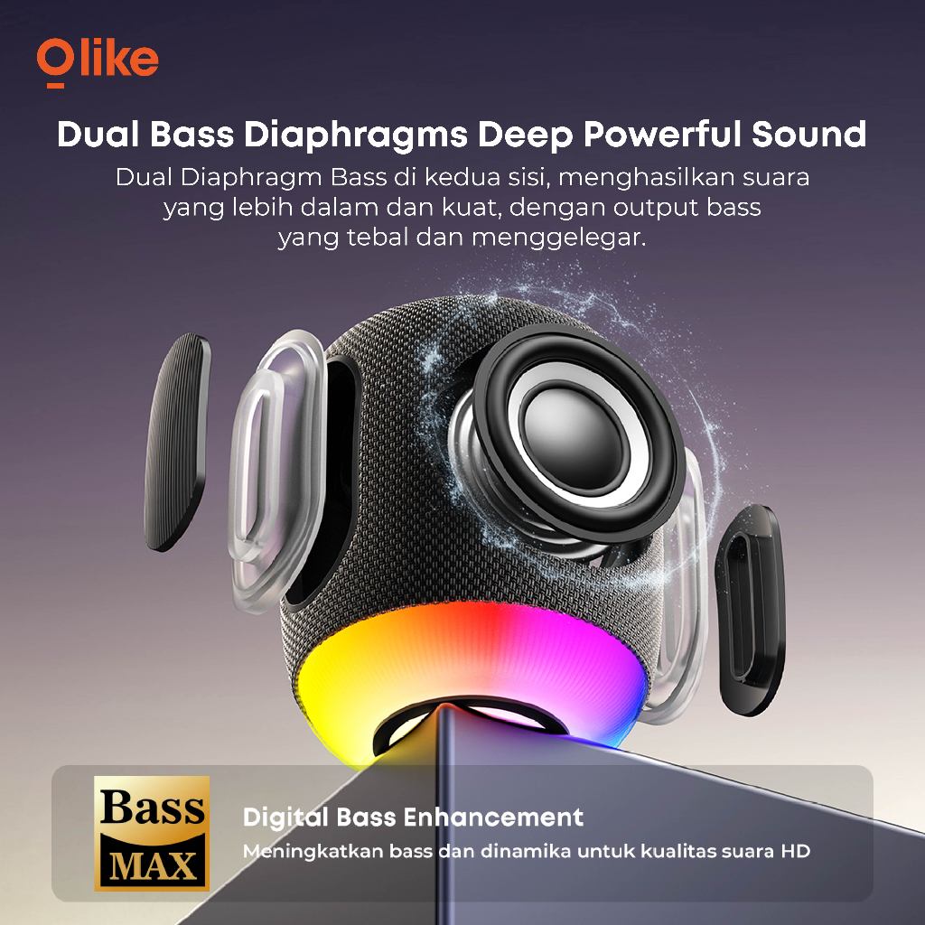 OLIKE Speaker Bluetooth SV2 RGB 1800 mAh Playing Time 12 Jam Power 10 Watt Stereo Bass Suara Jernih