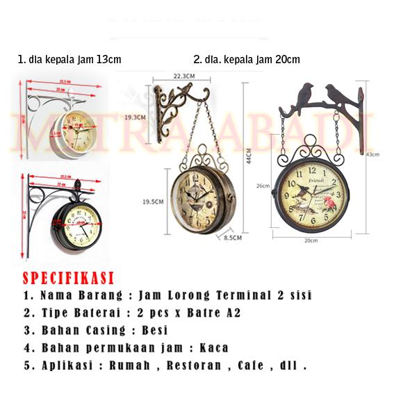 JAM ANTIK DINDING STASIUN CAFE LORONG JALAN VINTAGE DOUBLE SIDE CLOCK - DIA 13CM CASHTM