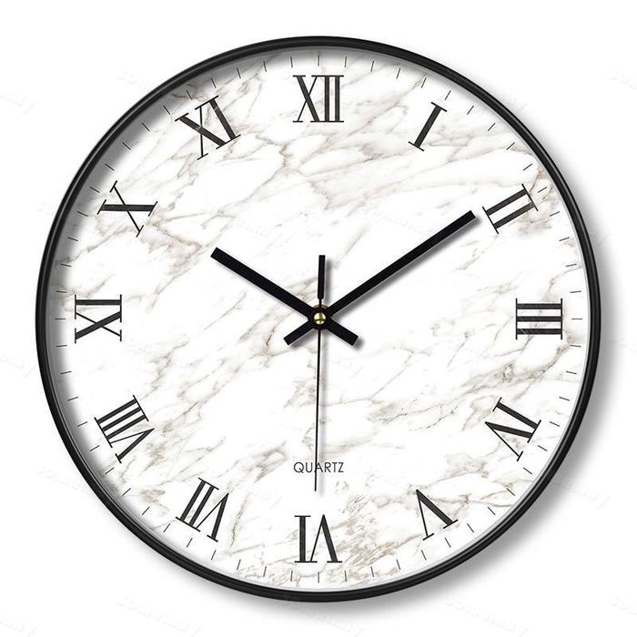 SOMEMAY JAM DINDING MOTIF MARMER PUTIH M47 / JAM DINDING AESTHETIC 30CM/ JAM DINDING TEMPEL - HITAM