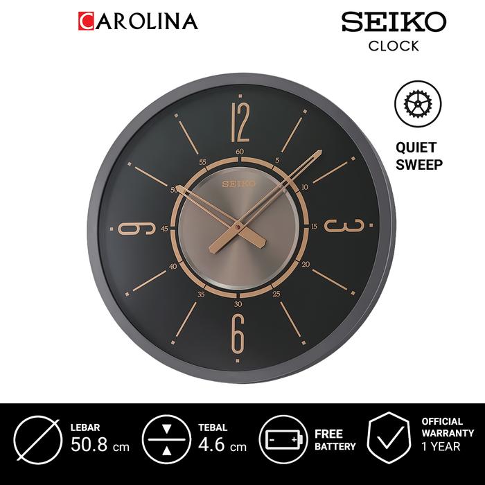 JAM DINDING SEIKO ANALOG QXA759K QUIET SWEEP GREY COLOUR BLACK DIAL DECORATOR WALL CLOCK