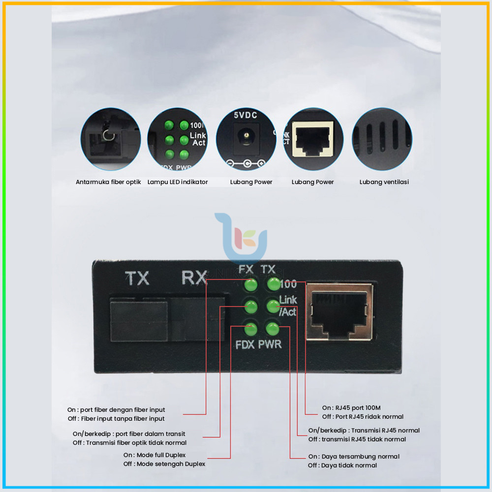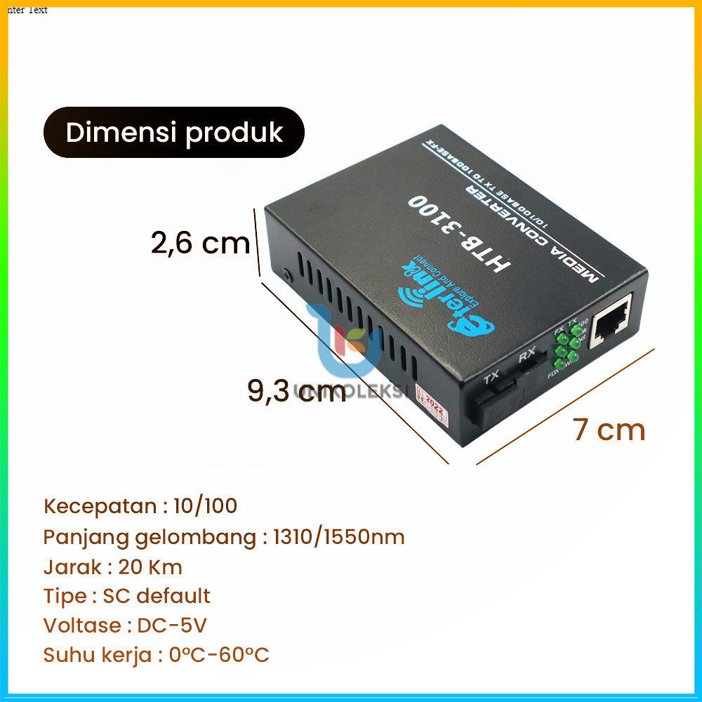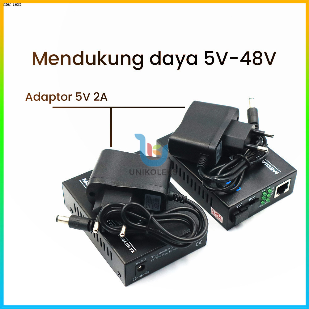 Sepasang HTB-3100 Fiber Optic Media Konverter Single Mode dengan 5V 2A EU Adaptor