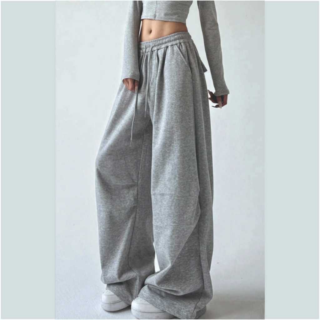 Spasmodic - Celana Sweatpants Loose Baggy Fleece Wanita Abu Misty