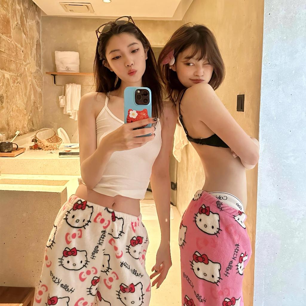 Homie - Celana Panjang Wanita BULU Lembut Polyester Hellokitty Spiderman Celana Tidur Piyama Wanita Celana Couple