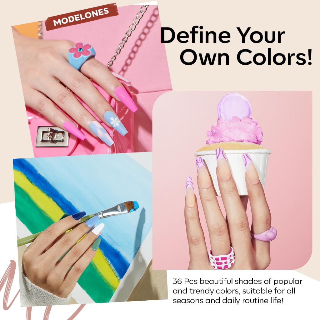 MODELONES Gel Nail Polish Set, 36 Pastel Rainbow Colors 7ML Soft Pink Red Green Summer Neon Gel Polish Glitter Nude Soak