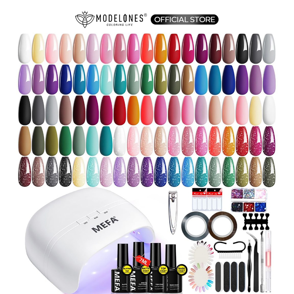 MODELONES 60Pcs Gel Nail Polish Kit with U V Light, 32 Colors Classic Nail Kit Soak Off Nail Polish Set with Matte/Gloss