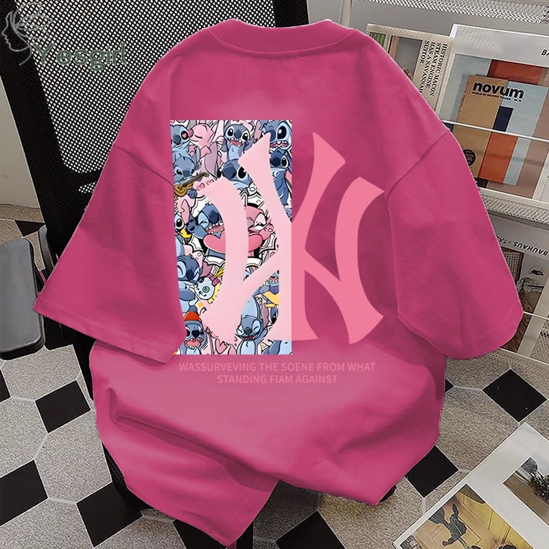 Yesgirl Korea style Stitch & MB joint print kaos kasual longgar| Kaos Oversize Wanita | Fashion korean style baju kaos oversize| Baju atasan wanita terbaru 100cotton | Kaos Putih Wanita | 7.4