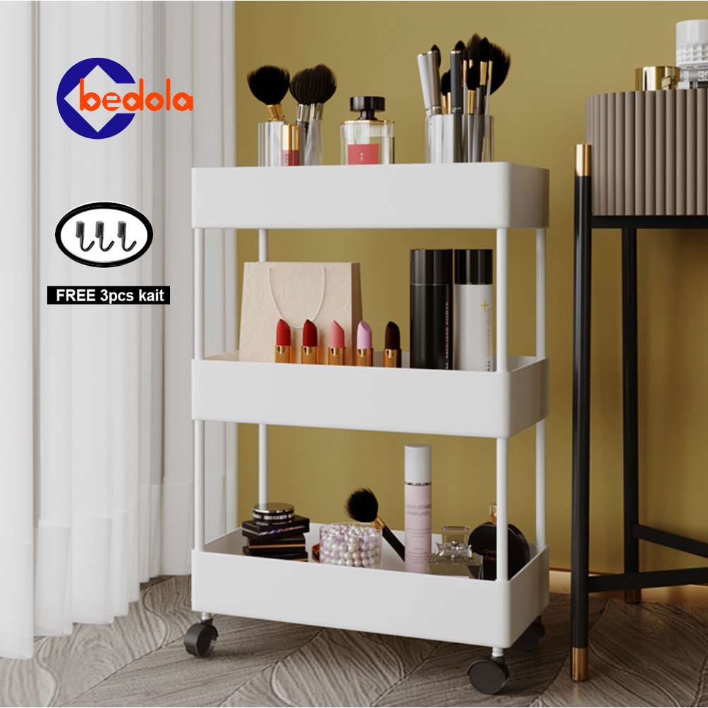 Square rak dapur susun rak dorong serbaguna rak troli rak kamar mandi 3 tingkat dengan roda