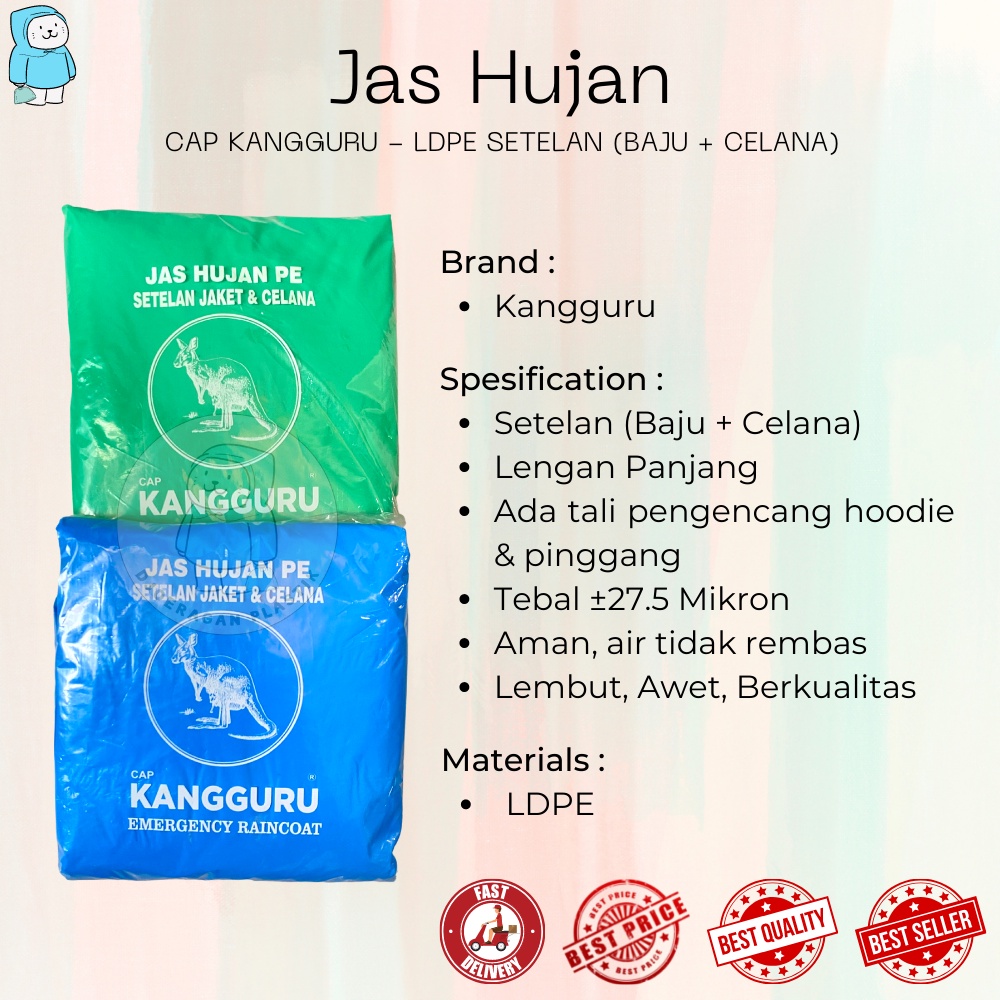 [1Lusin = 12Pcs] Jas Hujan LDPE Setelan Baju + Celana Cap Kangguru | Mantol | Mantel | Raincoat | Rain Cover