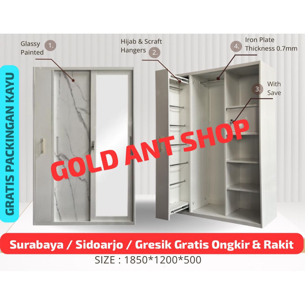 Lemari Pakaian Besi Hijab 3 Pintu Sliding 120 Laci Kaca Lemari Sliding Besi 3 Pintu 120 Laci Hijab Lemari Pakaian Besi + Rak Hijab