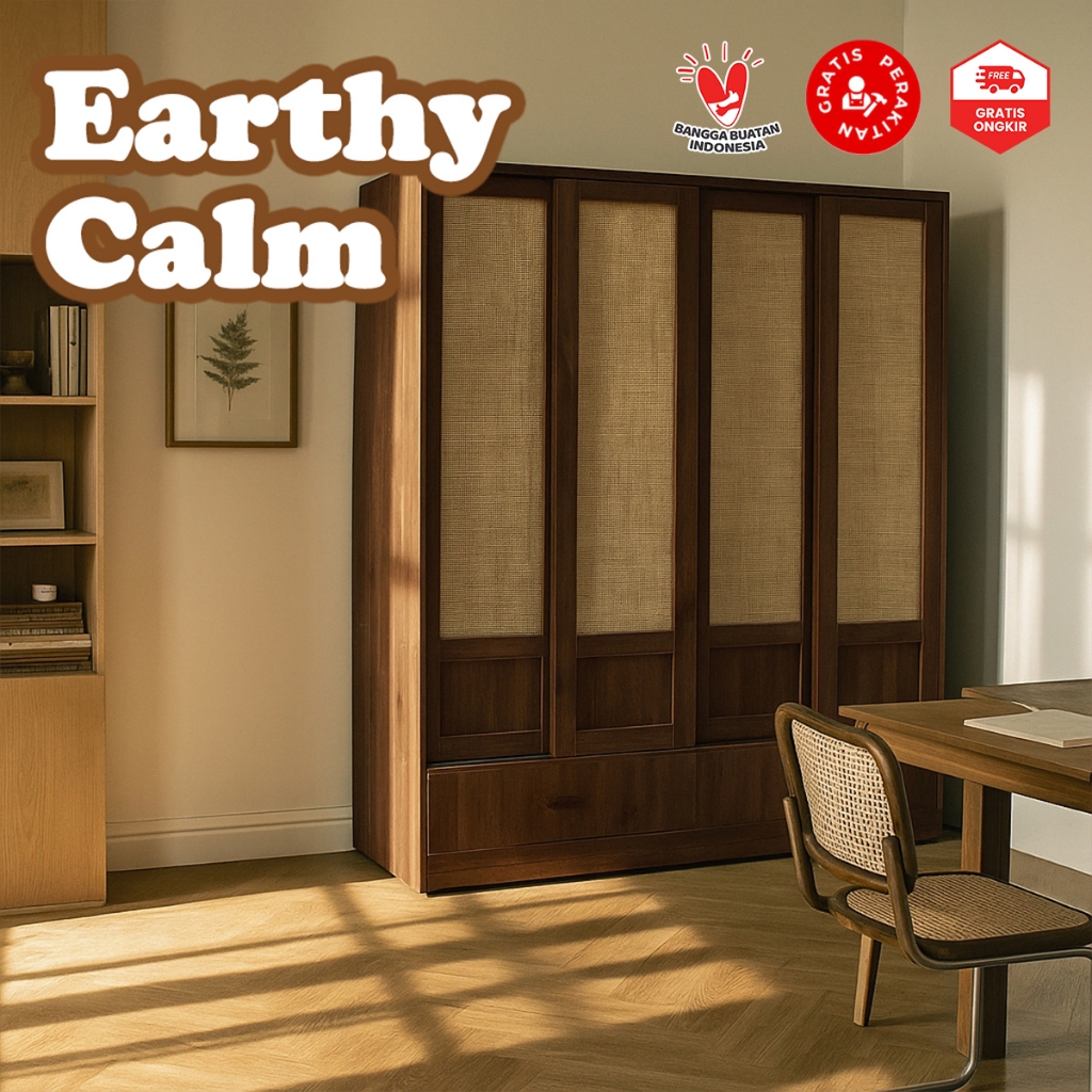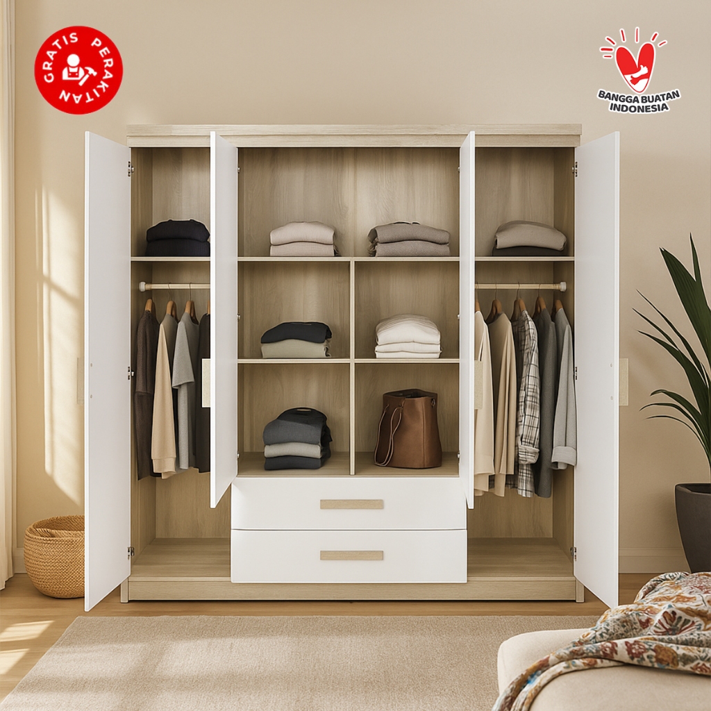 Casaloma Furniture Lemari Pakaian Baju 4 Pintu Murah Japandi Modern Minimalis