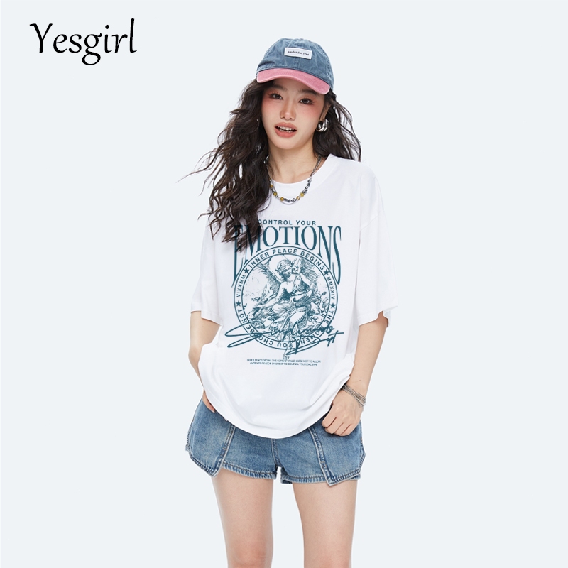 Yesgirl Korea style “COMMISSION” print kaos kasual longgar| Kaos Oversize Wanita | Fashion korean style baju kaos oversize| Baju atasan wanita terbaru 100cotton | Kaos Putih Wanita | 7.22