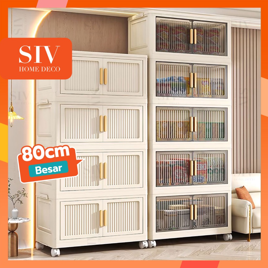 70-80cm BesarSIV 3/4/5/6 Susun Lemari Plastik Jumbo Lemari Plastik Lipat Penyimpanan Serbaguna