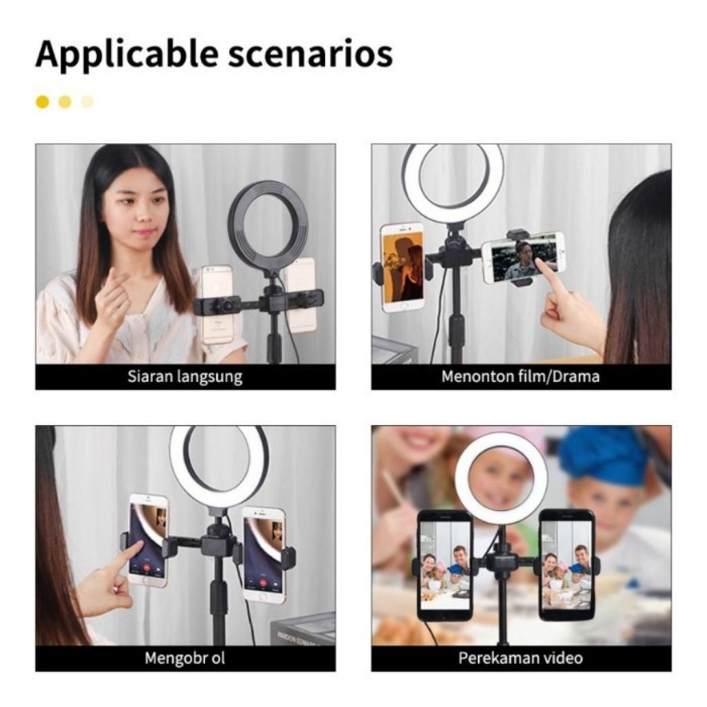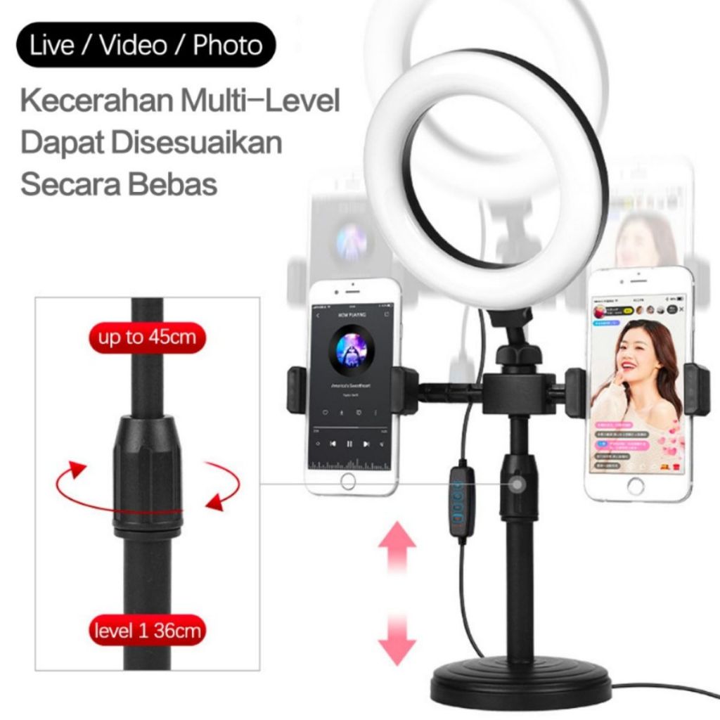 Ring Light + Tripod 2 Holder Hp Stand Tripod Meja Tripod Mini Live Selfie Makeup Serbaguna - AVEN