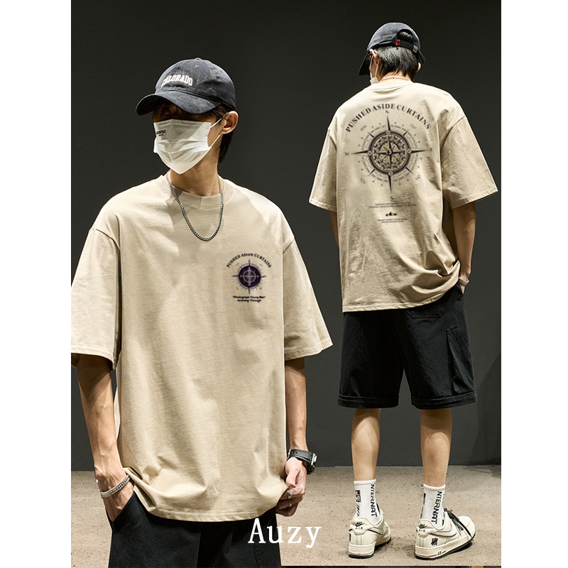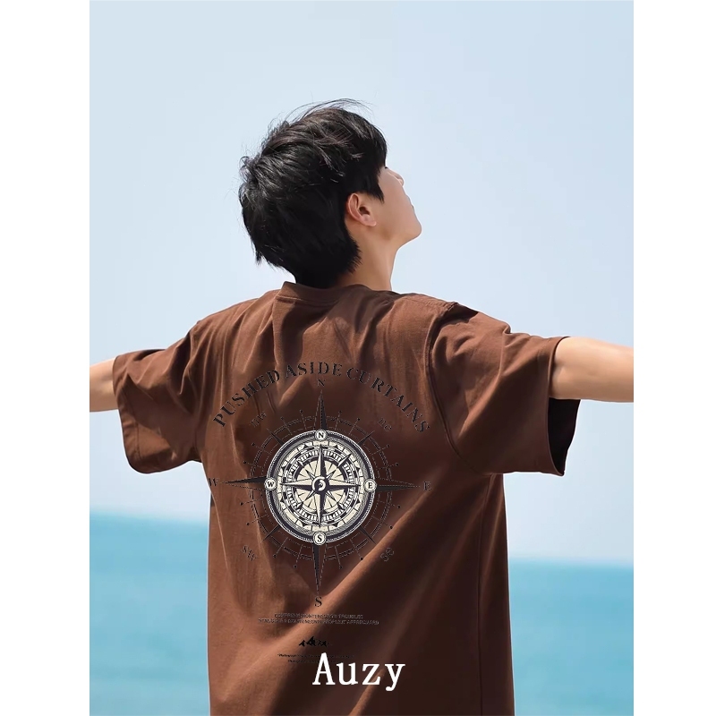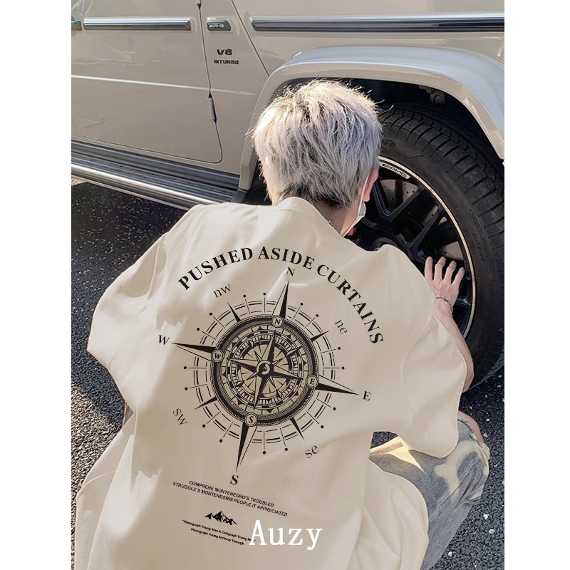 AUZY retro Amerika Mode kompas kaos pria wanita T-shirt baju oversize t shirt distro 7.10