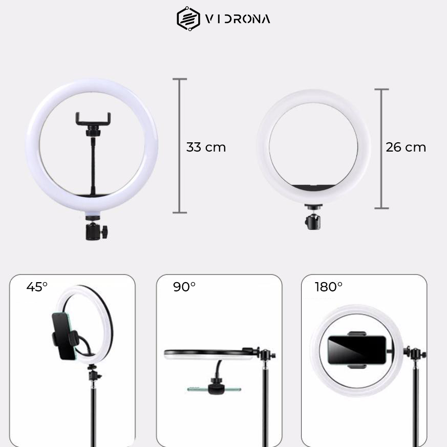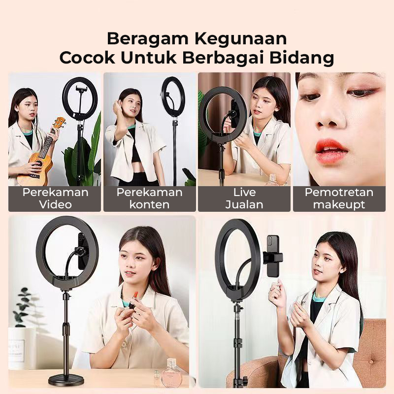 VIDRONA Satu Set Ringlight 33cm Tripod 2 Meter Lampu LED Makeup Vlog Live Streaming Konten Kreator