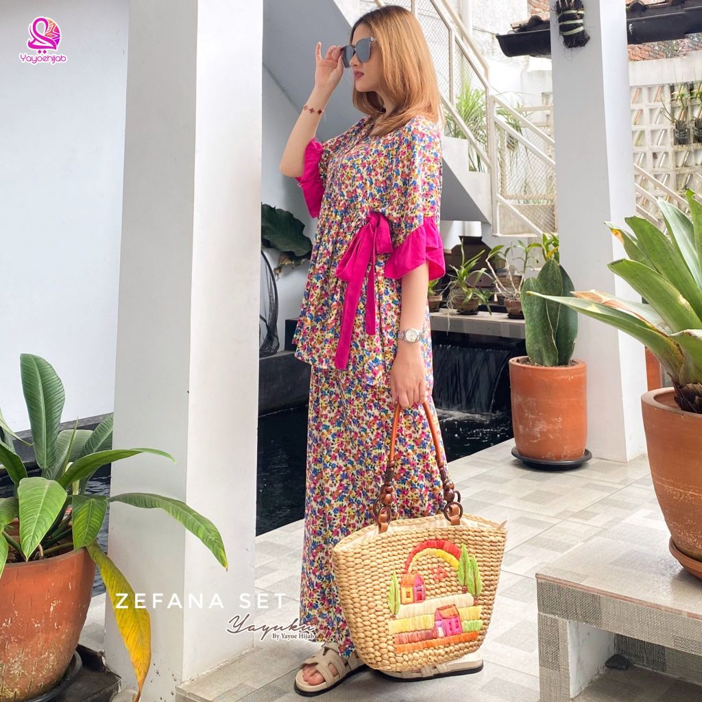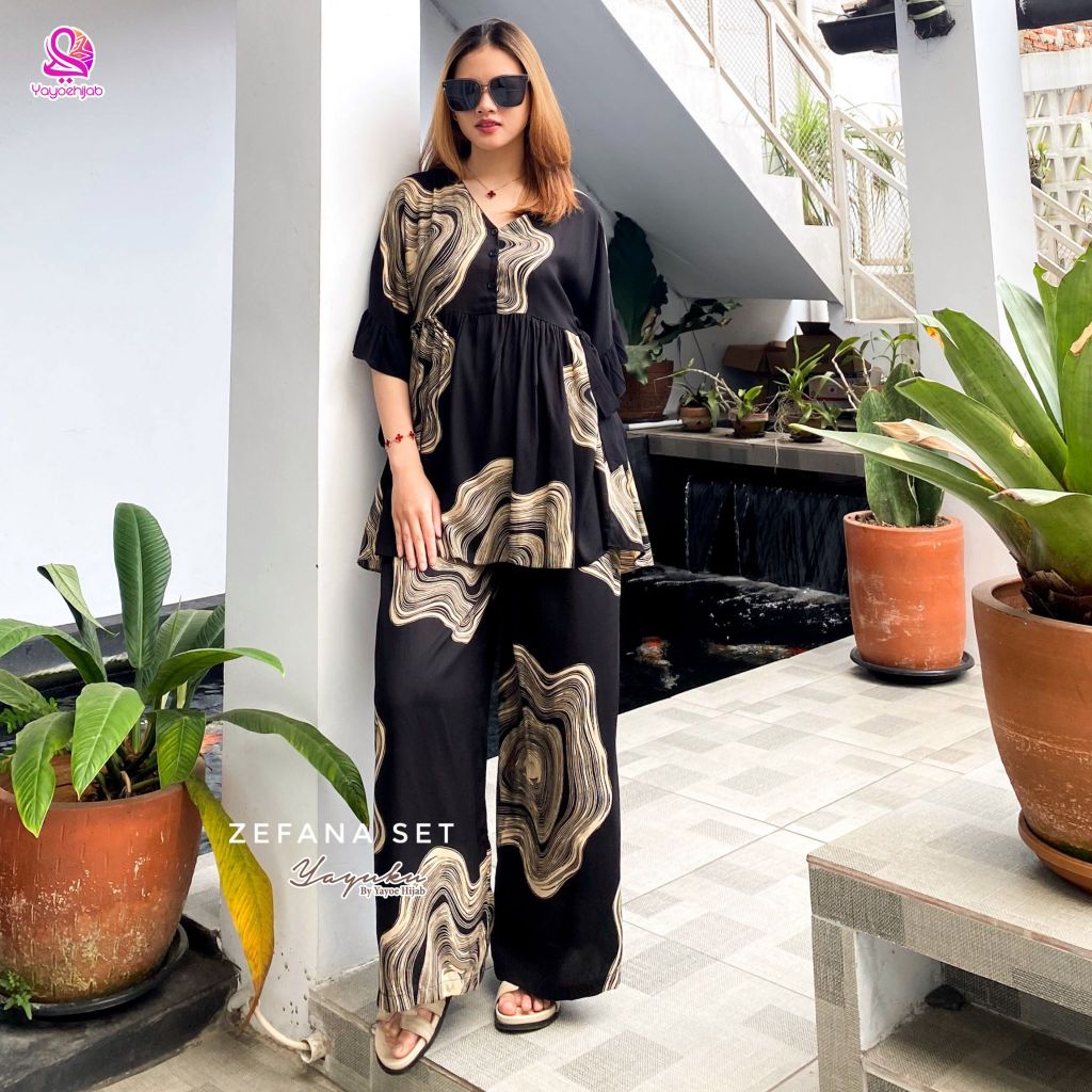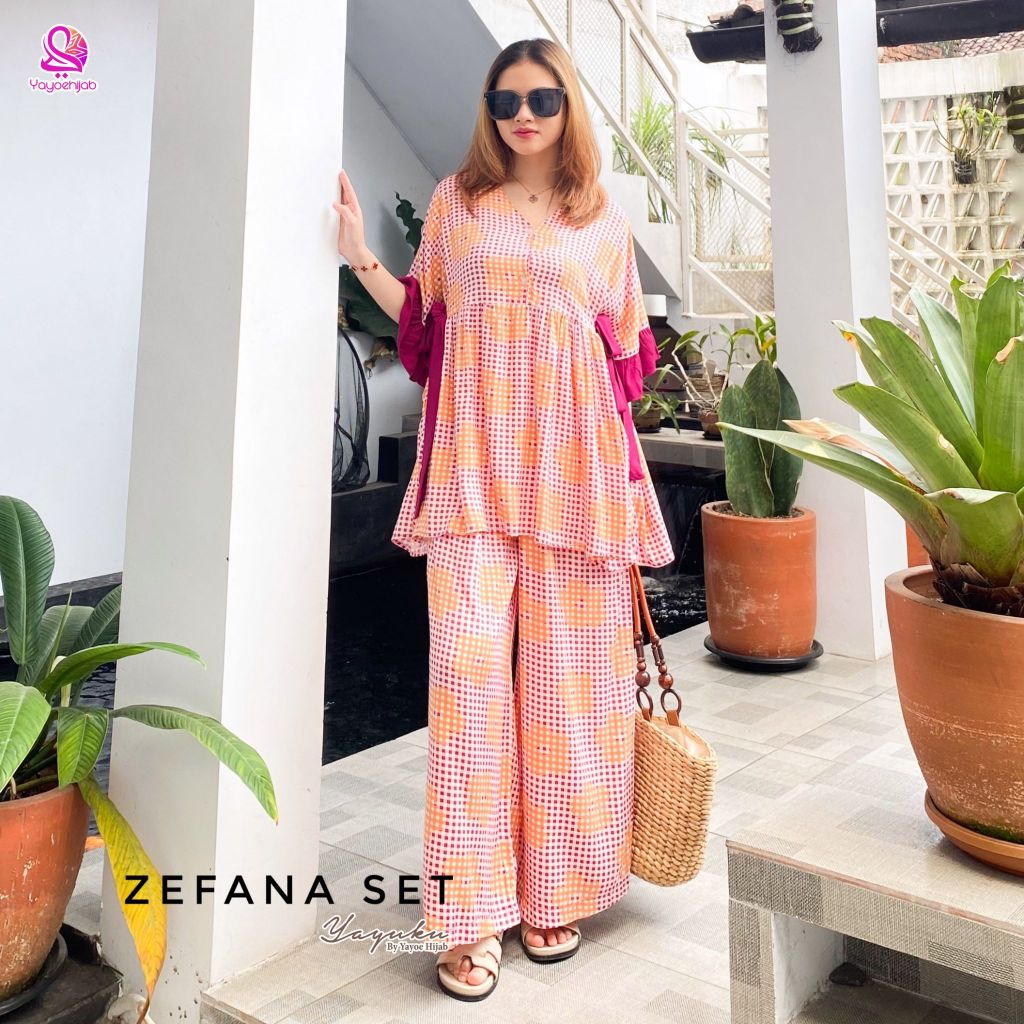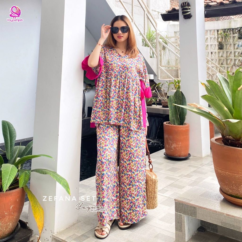 Zefana One Set Setelan Modis Daily Wanita Celana Panjang Tali Samping by Yayoehijab
