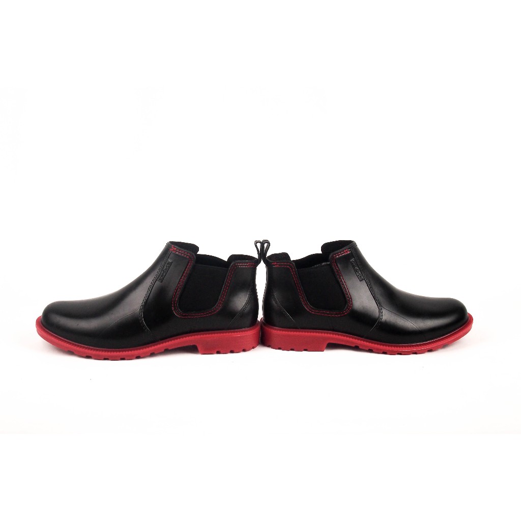 Sepatu Boot Pendek Hobby & Work AP Boots Hitam Merah Karet Lokal Anti Air & Slip Sepeda Motor