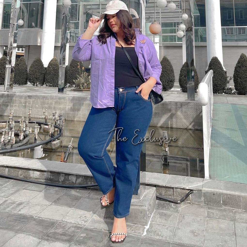 Celana Boyfriend Jeans Wanita Jumbo BB 65 - 125 KG Celana Baggy Jeans Bigsize Highwaist Boyfriend