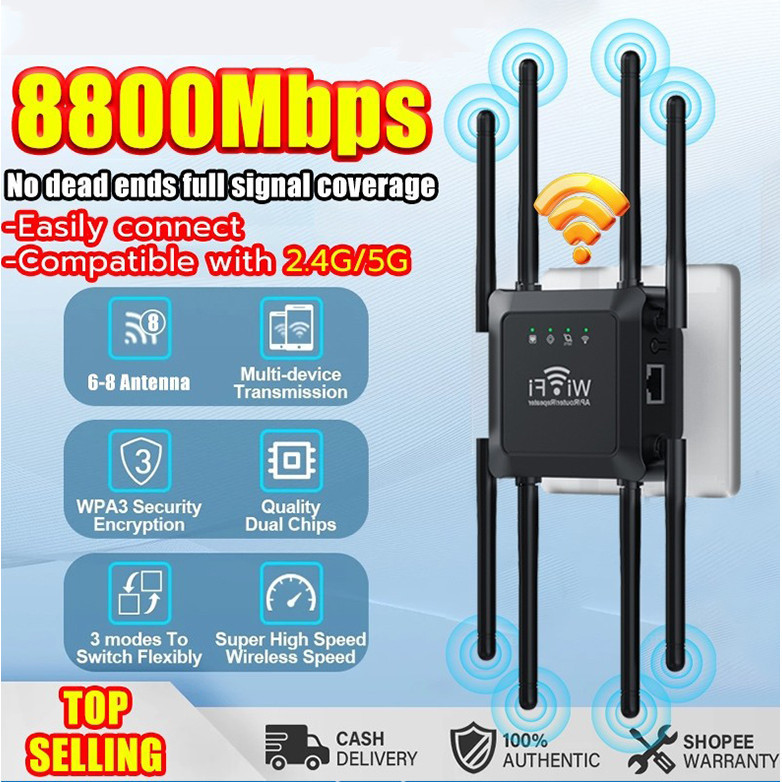 8 Antena Extender Wifi 1200Mbps 2.4G Dan 5G Sinyal WiFi Memperluas Wireless Wifi Range Extender Router Pengulang Penguat Wifi