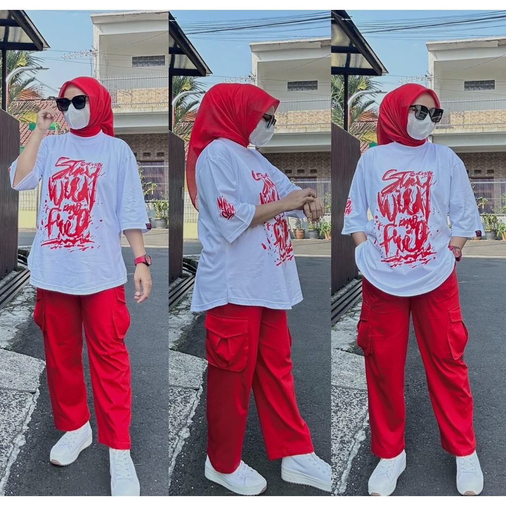 NIO - One Set Cargo Setelan Celana Oversize_Setelan Cargo Terbaru Setcel Kaos Katun Combed Printing