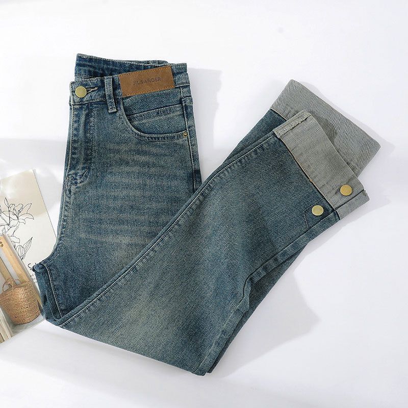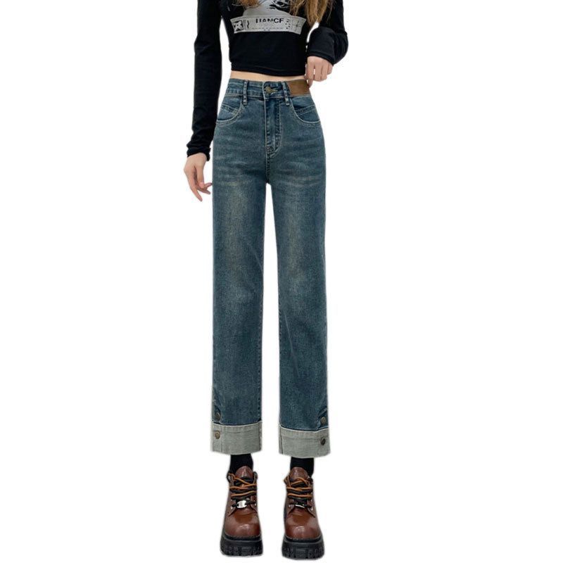 Shenel Celana Jeans High Waist 8034 Jeans Kulot Highwaist Stretch Denim Kaki Lipat Jeans Panjang 7/8