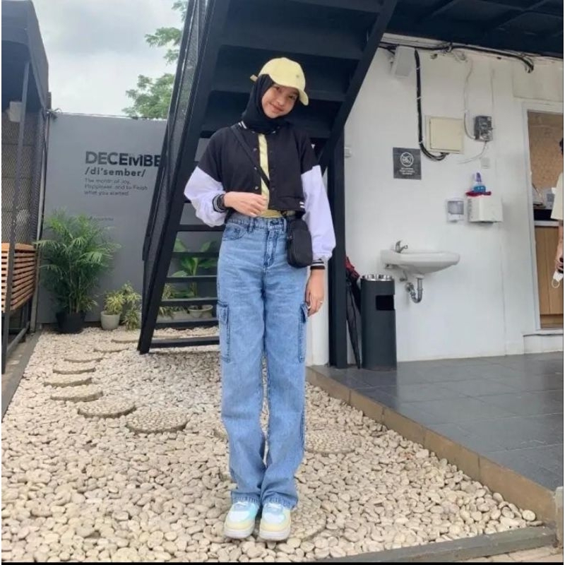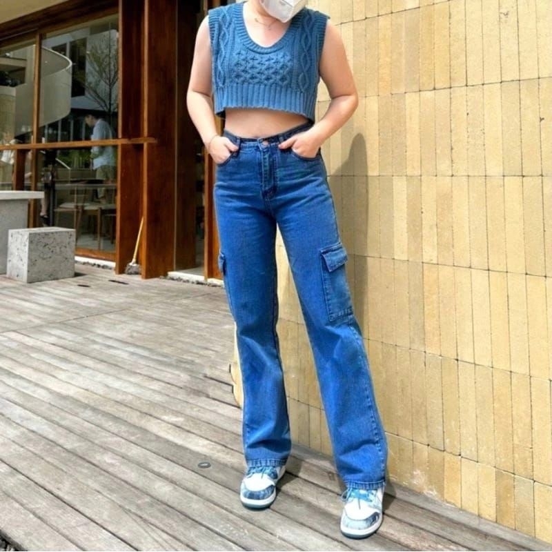 Celana cargo jeans higwaist || cargo pants || kargo korean style