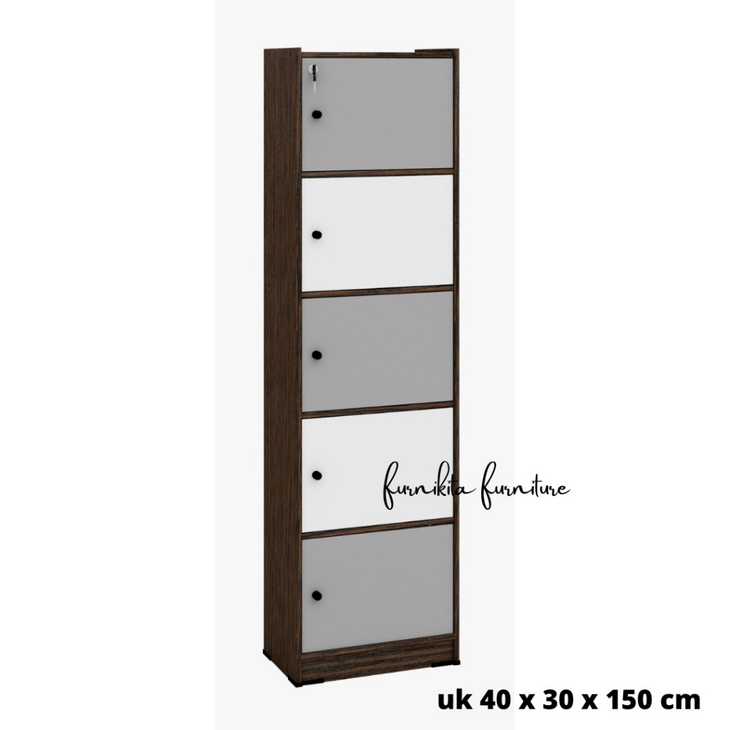 LEMARI RAK BUKU SERBAGUNA SUSUN 5 KAYU DENGAN KUNCI
