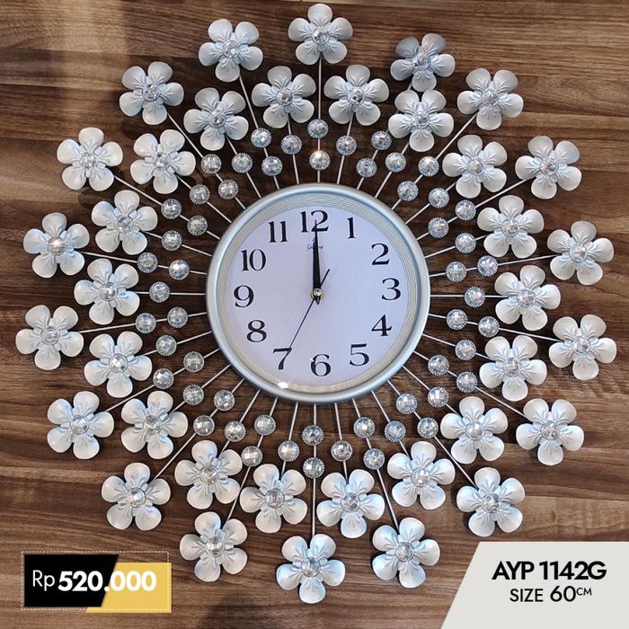 JAM DINDING UNIX SUNBURST AYP DENGAN BATU KRISTAL DESIGN TURKI - 1025-SIL-DEFECT