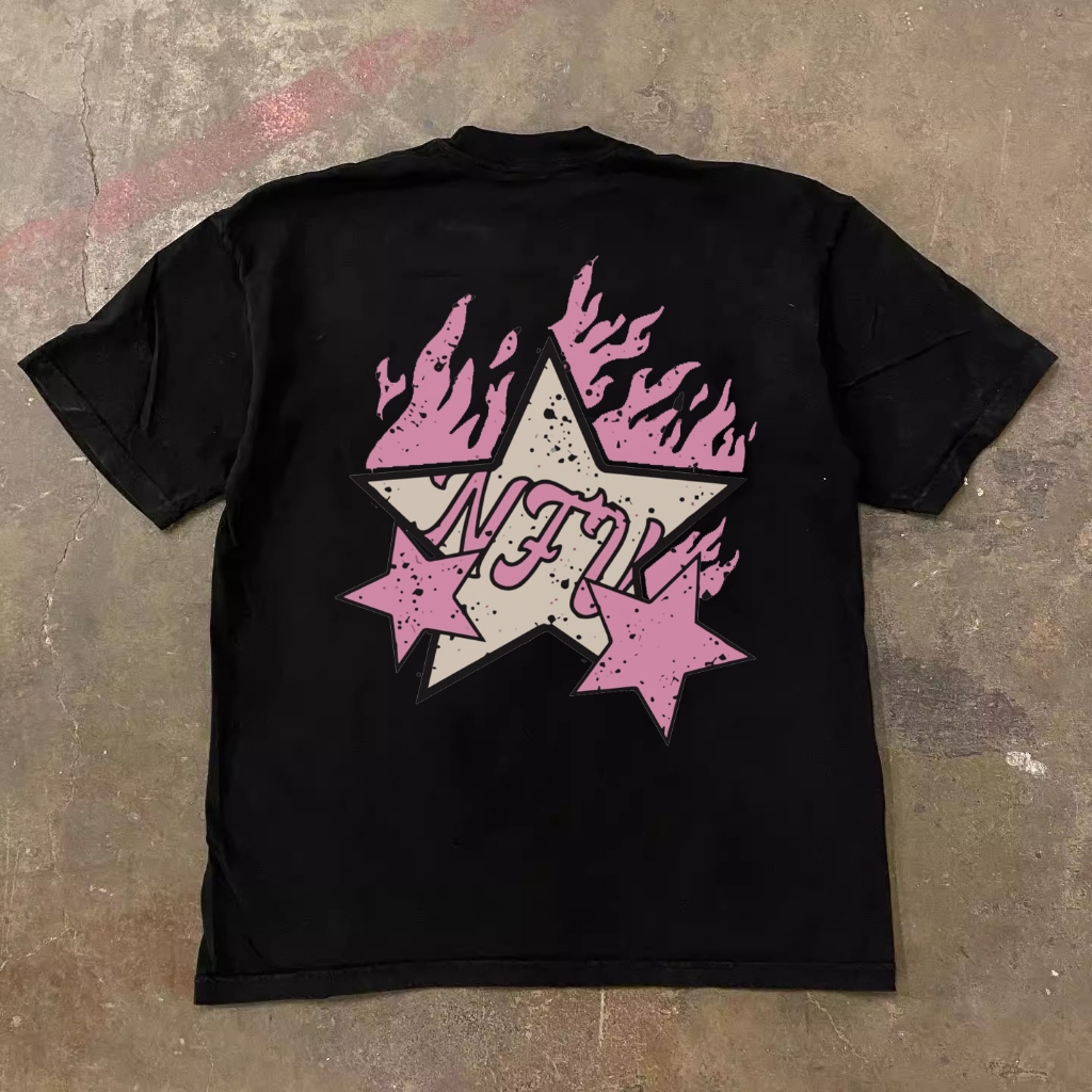 JJ.STORE Bintang Merah Muda Korea Style T-shirt Oversize | Kaos Wanita Cream | Kaos pria dan wanita