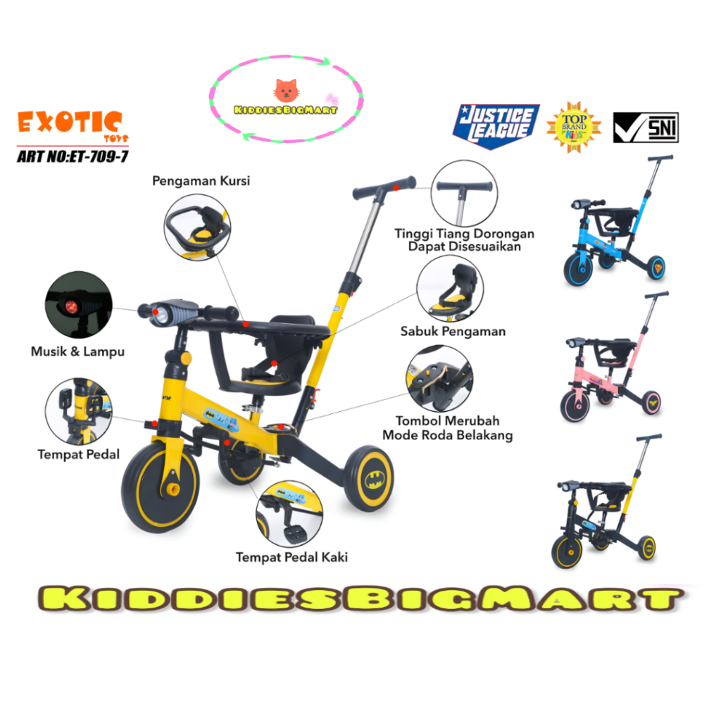 Sepeda Anak Roda Tiga Exotic ET 714 / ET 709-7 / ET 733 / FAMILY 702 Tricycle Balence Bike Push 4IN1 Music Lampu