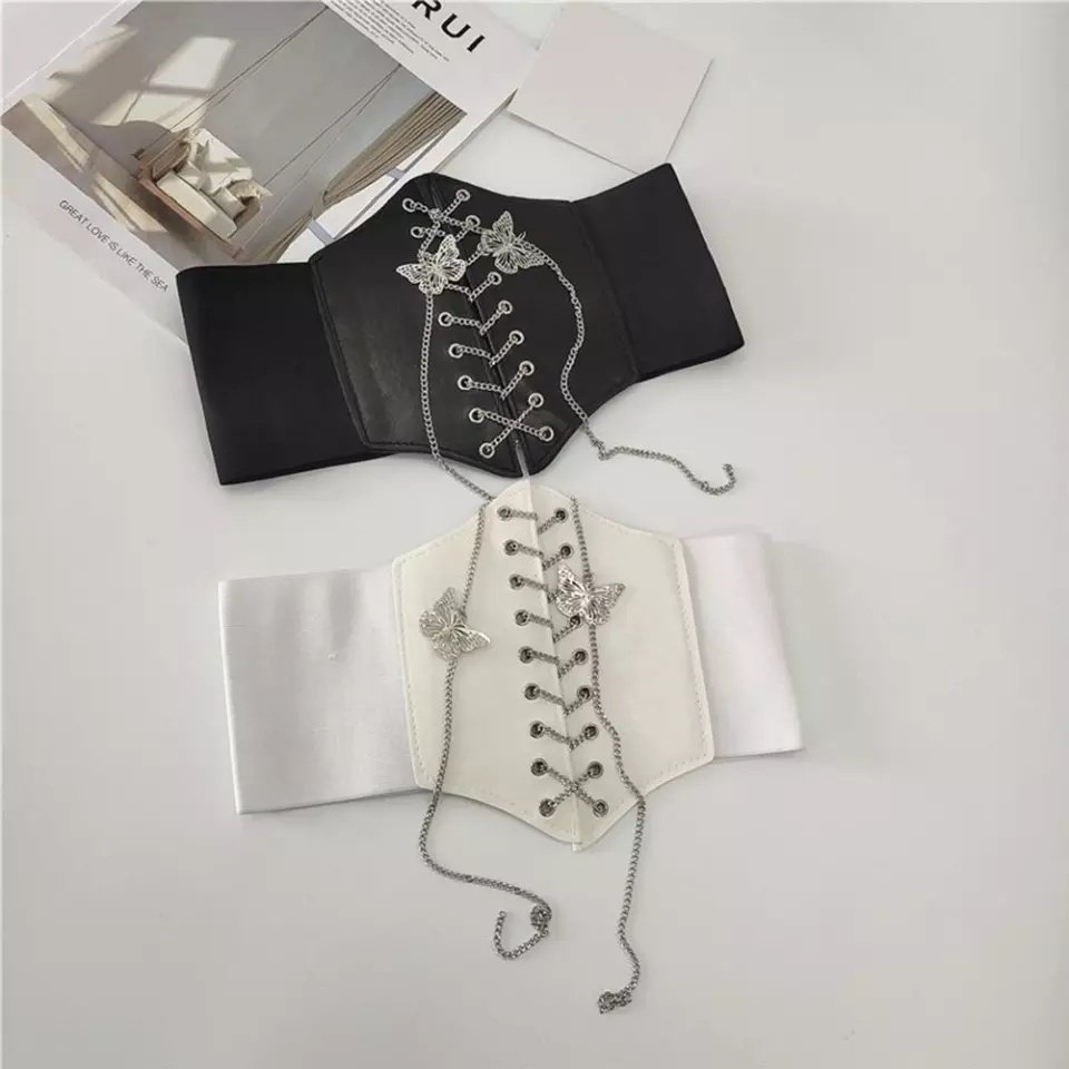 Belt Korset Sabuk Wanita Rantai Kupu Gotik Ikat Pinggang Renda Bustier
