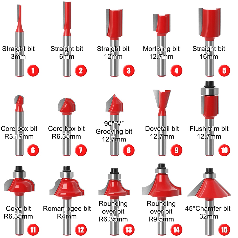 COOFARI Mata Mesin Profil Router Bit Set 15 Pcs 1/4 Inch Untuk Membentuk Kayu Free Box Kayu