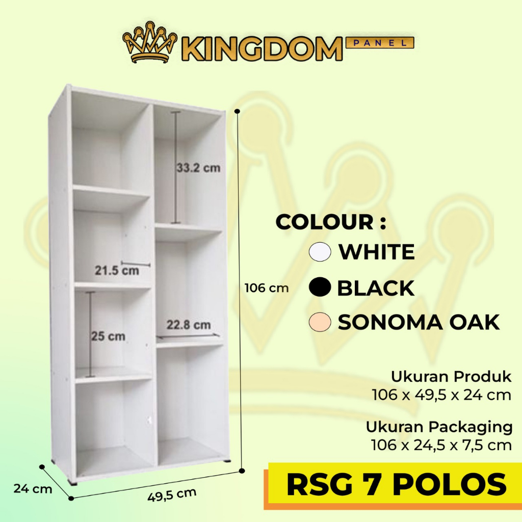 LEMARI RAK SERBAGUNA 7 RAK KAYU TERBARU MURAH LEMARI BUKU RSG5B RAK BUKU 7 PINTU PUTIH CREAM