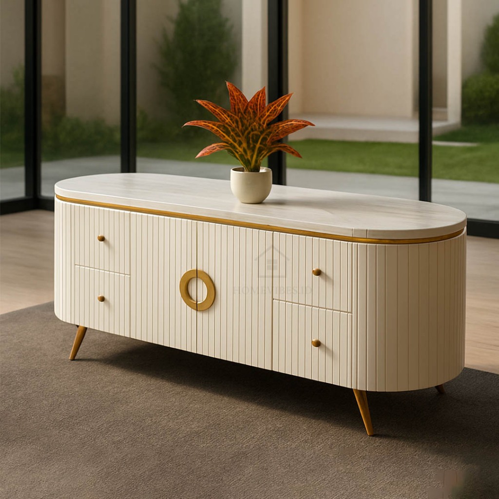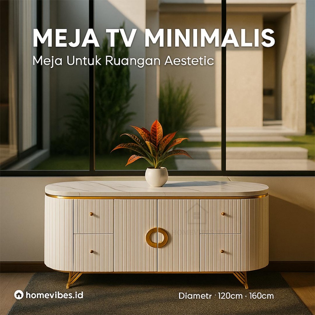 Meja HPL Salur Laci Minimalis Tinggi 60 cm Konsol TV Estetik Modern