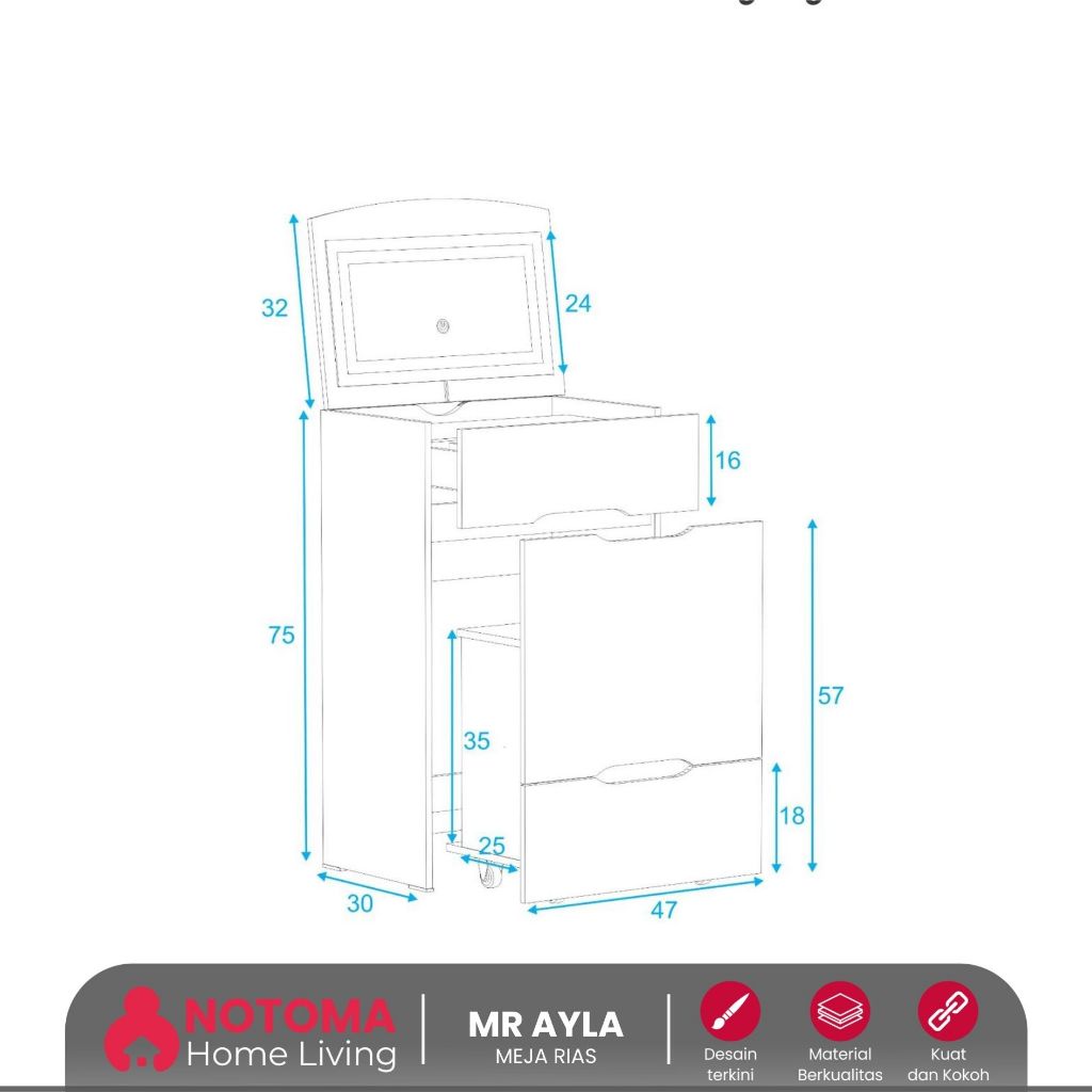 Meja Rias Minimalis LED Include Kursi dan Laci Furniture Hemat Ruang Meja Hias Meja Rias Aesthetic Series Ayla