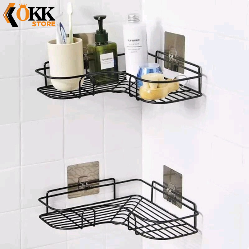 OKK Rak Sudut Kamar Mandi Tempel Dinding Tempat Sabun Gantung Dinding Keramik Rak Dapur Besi