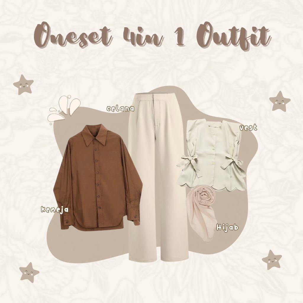 Oneset Eliry Korean Vest Hijab (Hijab,Vest,Kemeja,Celana) Set 4 in1 Wanita Remaja Kekinian - LO74