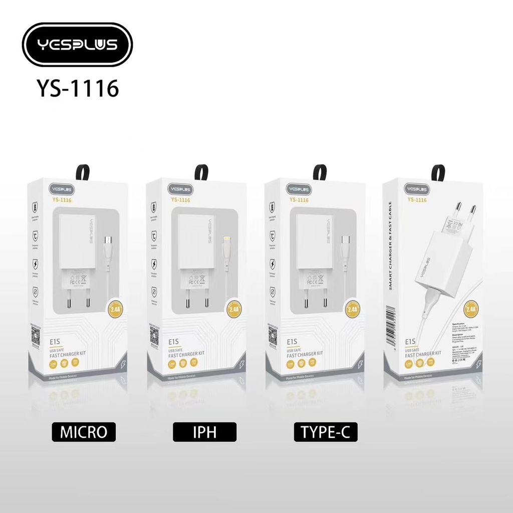 Charger YESPLUS YS-1116 Charger Fast Charging 2.4A Smart Charger & Fast Cable