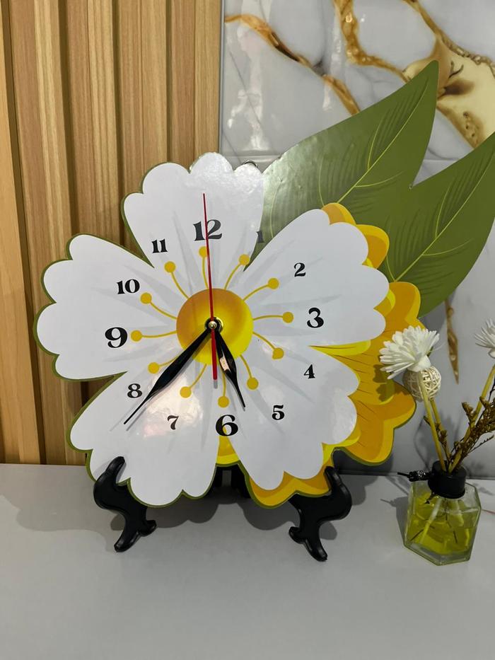 JAM DINDING AESTHETIC BUNGA BOHO AESTETIK LED - BUNGGA PUTIH KUNING, LAMPU