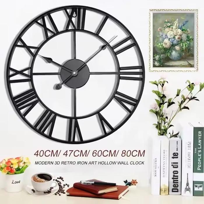 JAM DINDING BESAR ANGKA ROMAWI GAYA EROPA VINTAGE UNIK - HITAM 40CM