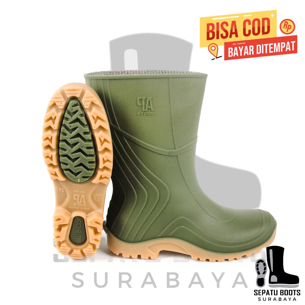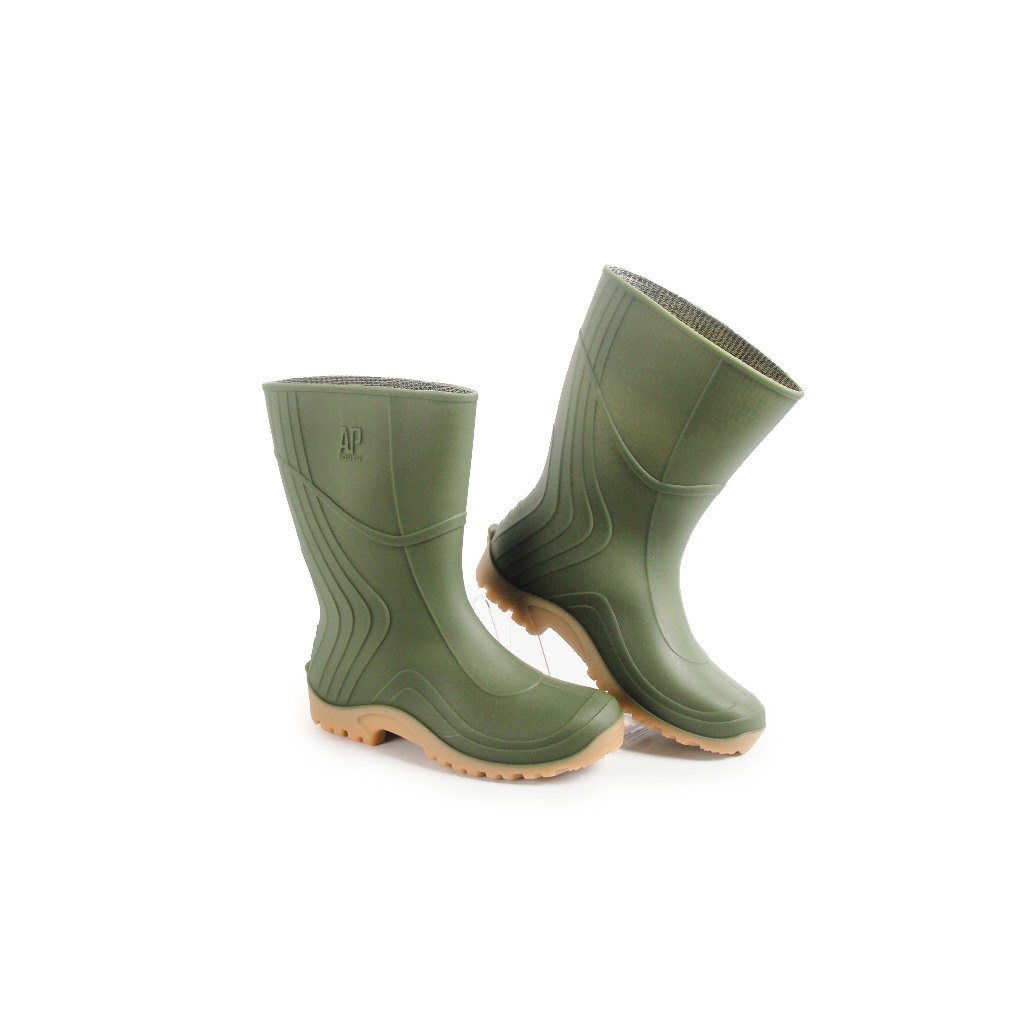 Sepatu Boot Pendek AP 2007 AP Boots Hijau Karet Lokal Anti Air & Slip Perkebunan Pertanian
