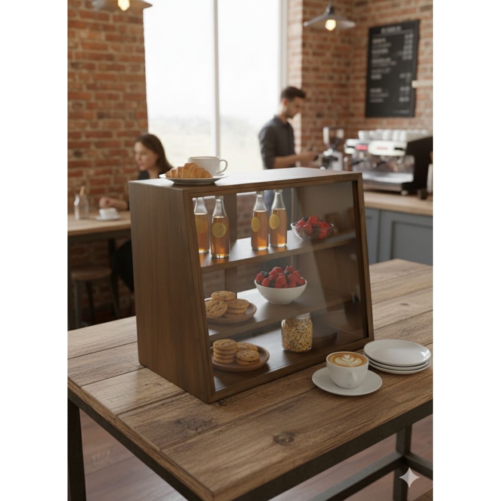 Rak Showcase Minimalis Modern Kayu Jati Akrilik