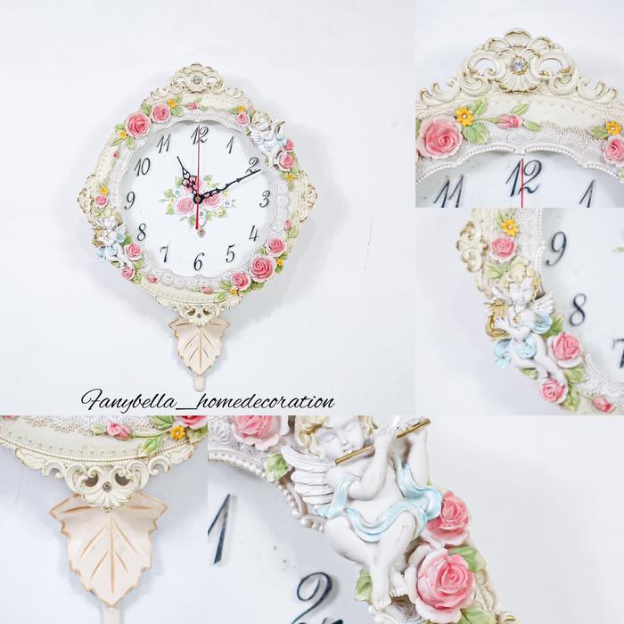 JAM DINDING AESTHETIC BULAT SHABBY BUNGA VINTAGE RUANG TAMU IMPORT DEC