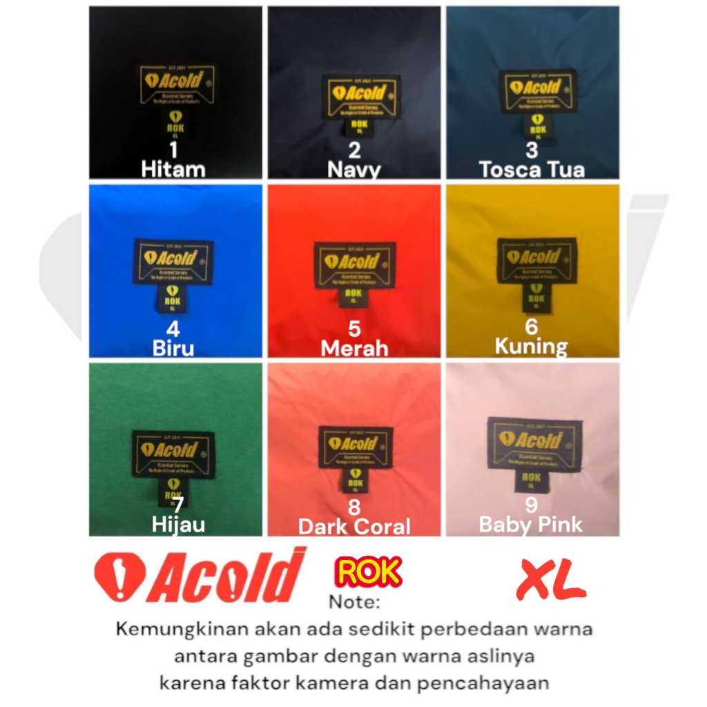HITAM, MERAH, NAVY, KUNING, TOSCA TUA, HIJAU SALUR, BIRU, HIJAU ARMY, KUNING MUDA, KREM